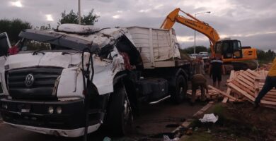 Camión volcó en Ruta 14 y su conductor debió ser rescatado