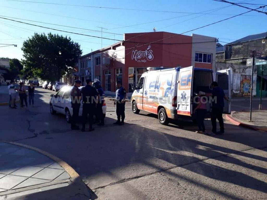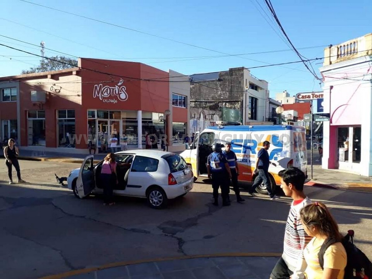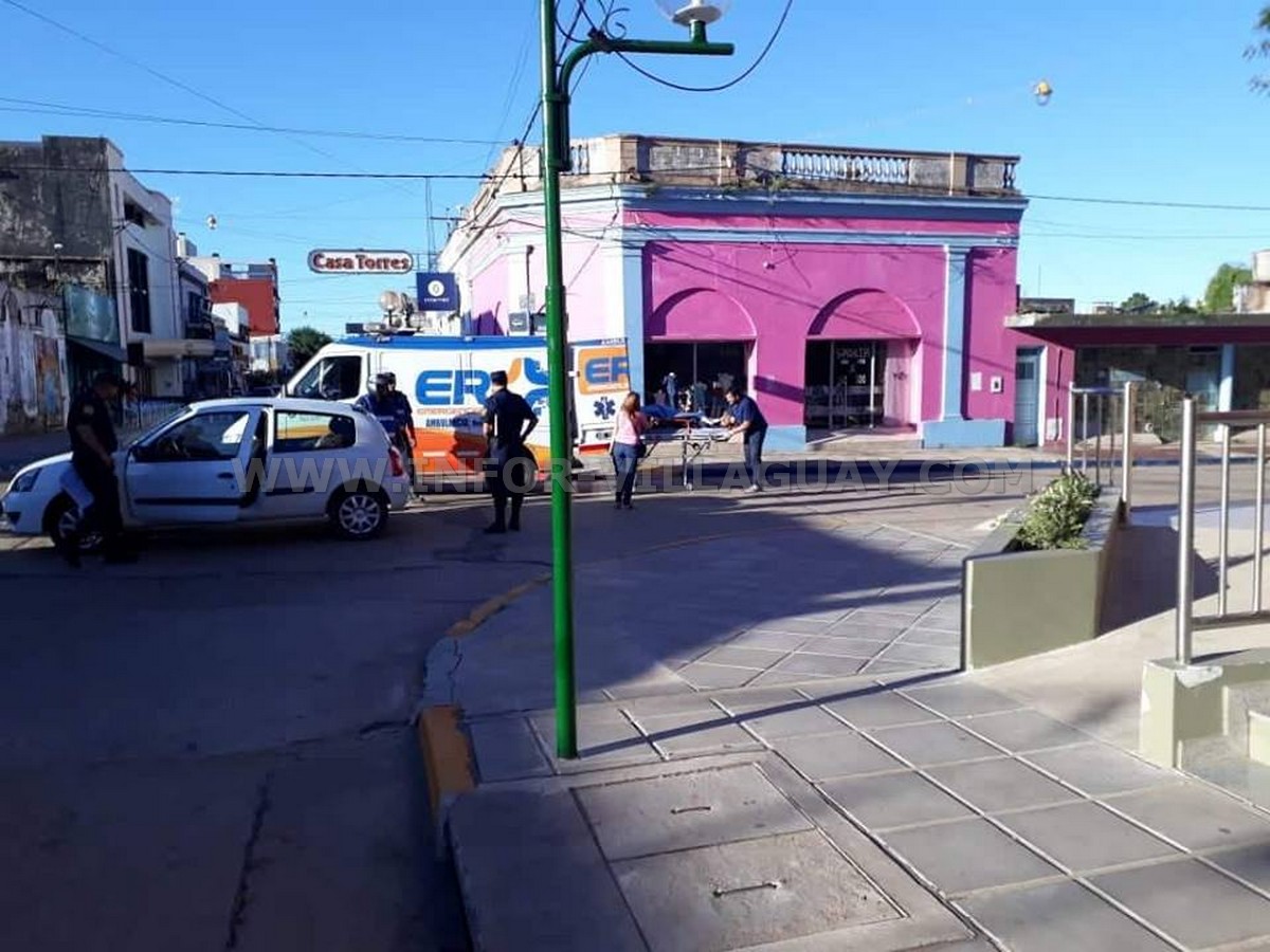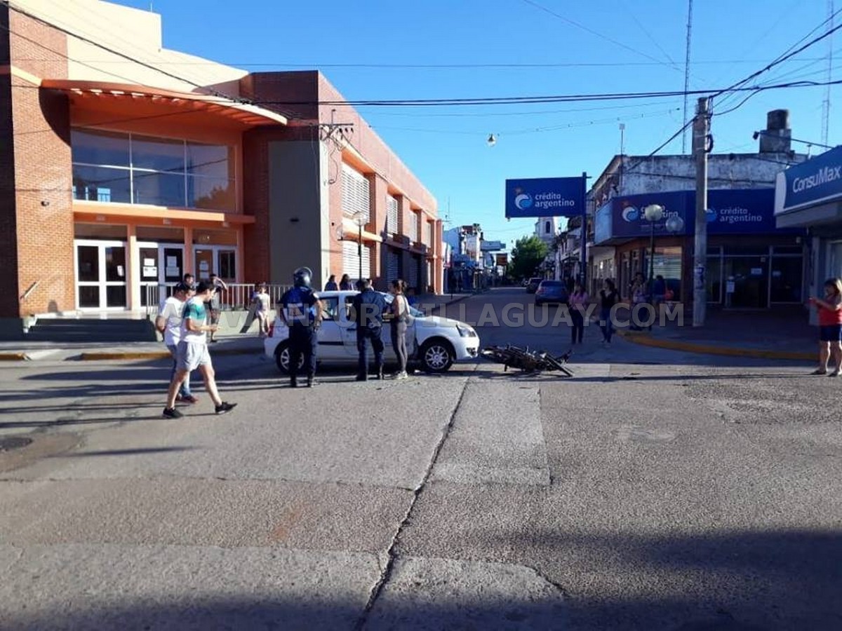 Por San Martin sentido Norte/Sur circulaba una motocicleta Honda Wave 110 cc conducida por un masculino mientras que por 9 de Julio sentido Este/Oeste lo hacia un automovil Renault Clio, presumiblemente conducido por una mujer mas un acompañante quien a la postre resultò lesionado a raiz del golpe que le proporciona el motociclista, presumiblemente con su cuerpo, lo cierto es que ambos debieron ser trasladados por ER Emergencias a un centro asistencial a fin de proporcionarle los primeros auxilios y evaluar las lesiones recibibidas.