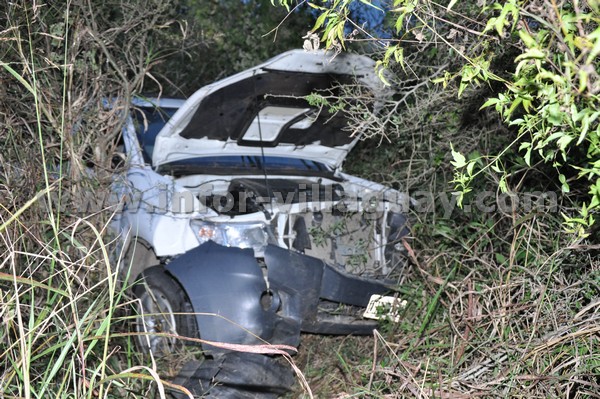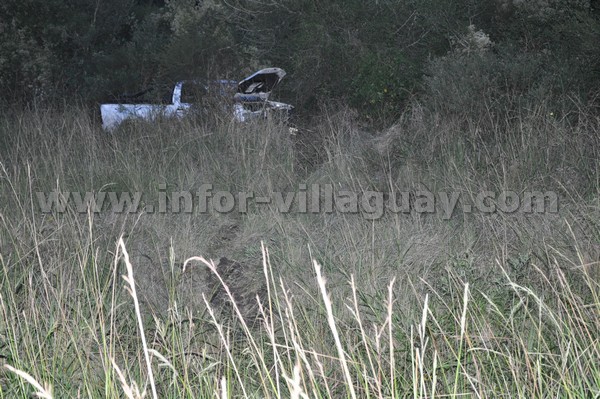 Fue suficiente un pestaneo al decir del chofer que se encontraba en el lugar, para, cuando volvió en sí, estaba en la senda contraria, alli es cuando volantéa bruscamente para desestabilizar el rodado y no volverlo a controlar mas haciendo un largo periplo para quedar contra un alambrado en el sentido opuesto al que circulaba y con severas roturas mecanicas.