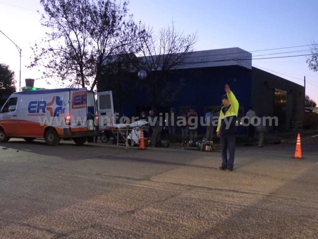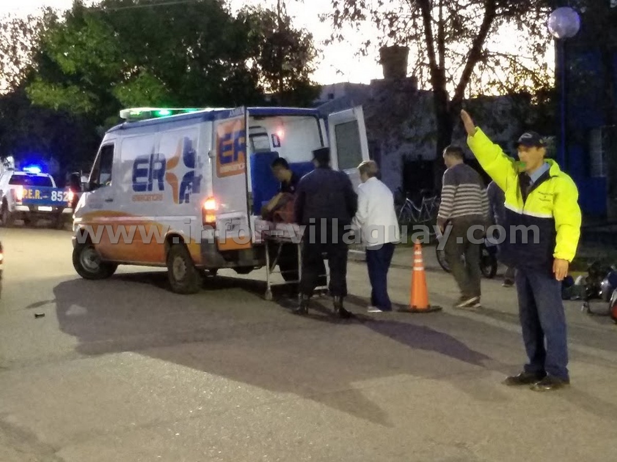 En la tarde del viernes 11 a las 18:30 horas aproximadamente, se produce un accidente de tránsito en intersección de calles Rivadavia y Boulevard Savio, entre un vehículo marca Peugeot Modelo Partner dominio MSL 309 conducido por un señor de 45 años de edad, y una Motocicleta Marca MOTOMEL, Modelo C150, dominio 705 EFJ, en la que se conducía un hombre de 28 años de edad; ambos domiciliados en esta ciudad. A raíz de la colisión el motociclista fue trasladado al Hospital Santa Rosa donde el médico de policía de turno, luego de realizar placas radiográficas, determino lesiones de carácter graves por fractura de peroné. Intervino personal de criminalística para sus fines específicos.-