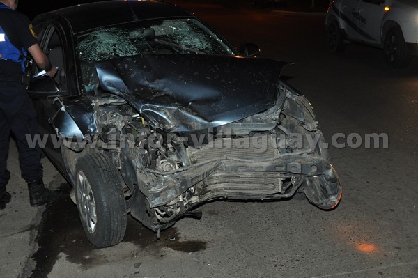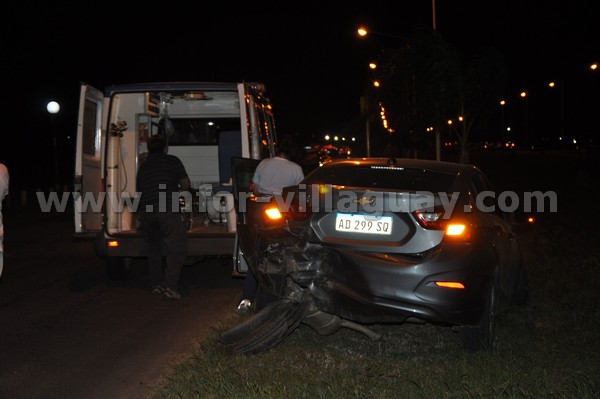 El Chevrolet Cruze circulaba sentido Norte/Sur o sea ingresando a nuestra ciudad cuando por la presencia del lomo de burro que está emplazado a la altura de la calle recreativa aminora la velocidad, siendo embestido por un Ford «K» que se desplazaba a velocidad considerable, no advirtiendo las luces que indican el lomo ni las de freno del Cruze, a consecuencia del impacto lo hace hacer un medio giro y queda en el sentido inverso del que circulaba en la banquina izquierda.