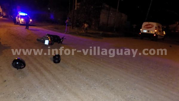 Siendo las 20:30 horas de este pasado sábado 13 de marzo se registró un siniestro vial que tuvo lugar en calle Mollajoli y Federación. Por razones que se tratan de establecer colisionaron una moto marca Guerrero 110 cc donde se conducía una mujer de 46 años y su hija de 12 años; y una