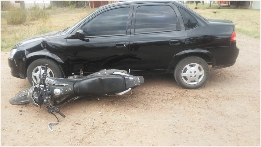 Siendo las 12:10 horas de este viernes 27 de enero se registró un siniestro vial en calle Belgrano y Michelena donde intervino personal policial de la Sección Judiciales y Comando radioeléctrico. Por razones que se tratan de establecer colisionaron auto marca Chevrolet modelo Classic, conducido por una mujer de 40 años de edad, y una moto marca Motomel, modelo Skua, conducida por un joven de 26 años de edad, este último fue trasladado en ambulancia hacia el Hospital Local por presentar escoriación en rodilla Izquierda. Se dio intervención al médico de policía en turno quien informó que se trataba de lesiones de carácter leves. Colaboró División Transito Municipal.-