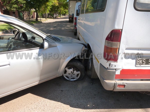 Por Pedro Goyena sentido Este/Oeste circulaba el Chevrolet Clasic y al pasar por intersección Esquiú, segun testigos presenciales afirmaron al cronista de infor-villaguay que fue embestido por un utilitario Peugeot Partner que lo hacia sentido Nortye/Sur, en la parte del guardabarro trasero derecho por lo que lo hace realizar un giro pegando en el cordon con la llanta trasera izquierda, para luego golpear un vehiculo usado para transporte de pasajeros, estacionado sobre Goyena, rompiendo la parte delantera derecha del clasic.