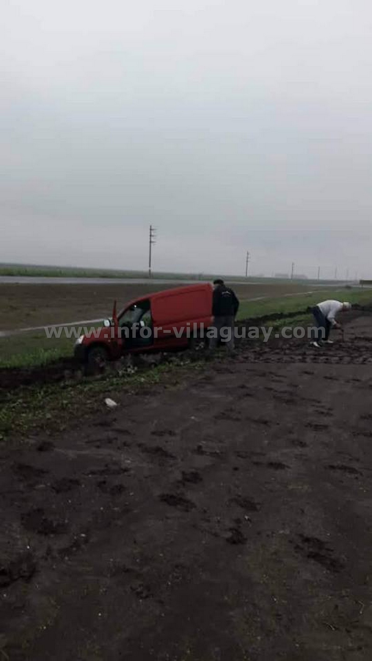 Al decir del conductor al cronista de infor-villaguay frena para ingresar a la localidad, y como ve que circula alguien decide bajar a la banquina a fin de esperar que pase el vehículo circulante, lo que no sabia que la banquina no era afirmada y alli comenzó a realizar algunos dibujos para felizmente no volcar, y quedar detenida a la vera del camino.