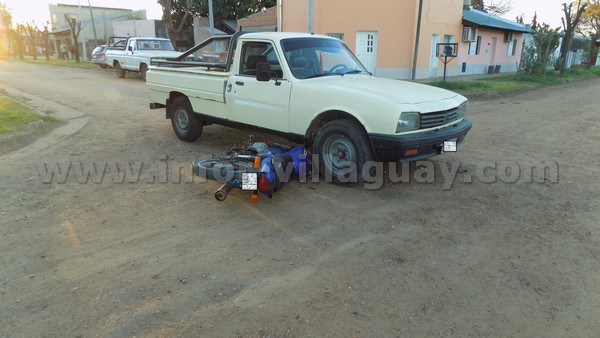 El hecho ocurrió alrededor las 20:30 horas cuando colisionaron un vehículo marca Peugeot modelo Pick Up 504, conducido por un hombre de 56 años de edad, que circulaba por calle 18 de Julio sentido oeste-este; y un motovehículo marca Honda CG 125, conducido por un joven de 23 años de edad, que transitaba en sentido sur-norte por calle Uruguay.