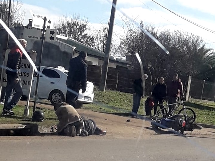 Siendo aproximadamente la  hora 11:10, se toma conocimiento de un siniestro vial en la intersección de Boulevard Paysandú y calle Mariano Necochea, en el que se vieron involucrados un automóvil Chevrolet Celta conducido por un señor de 74 años de edad quien transitaba por el Boulevard en sentido Sur-Norte, y una motocicleta Honda Storm conducida por una joven de 25 años de edad que transitaba por la misma arteria en sentido Norte-Sur. Según manifestaciones de un testigo de 40 años de edad, el automóvil habría girado para ingresar a calle Necochea, invadiendo el carril por el que circulaba la moto,  provocando la colisión para posteriormente darse a la fuga. La joven fue trasladada al Hospital Santa Rosa donde luego de ser examinada por el médico de policía quien determino lesiones de carácter graves, por fractura en dedo de su mano izquierda. Luego el rodado fue localizado en inmediaciones de calles Hermelo y Cornelio Saavedra, y por disposición de la fiscalía de turno, el conductor fue trasladado a dependencias policiales para su correcta identificación recuperando luego su libertad, quedando supeditado a la causa de Lesiones Graves en Accidente de Tránsito. Ambos vehículos fueron retenidos. Intervino personal de Comisaria Primera, Criminalística para sus fines específicos.