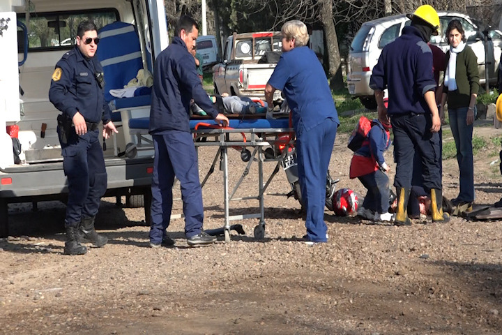 Fue el cuerpo de Bomberos Voluntarios de Villaguay quien brindó los primeros auxilios en el lugar de las tres personas accidentadas, luego llega la policía quienes inmediatamente cercaron el lugar y realiza el llamado inmediato a las ambulancias, se hizo presente una de ER EMERGENCIAS y llevó a un menor que se encontraba yá inmovilizado, el otro de los menores aparentaba estar en buenas condiciones pero aún quedaba la mujer quien aparentemente estaba con una herida en su pierna derecha.
