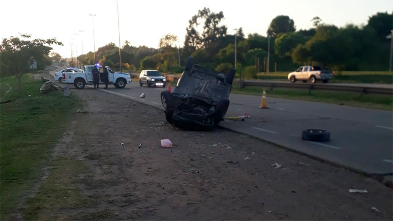 Automóvil despistó, chocó el guardarraíl y volcó en Paraná