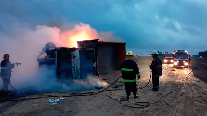 Ocurrió en horas de la mañana en la ruta nacional 131 a la altura del kilómetro 28. El chofer del rodado perdió el control, volcó y el camión se incendió en su totalidad. Trabajaron tres autobombas para sofocar las llamas.