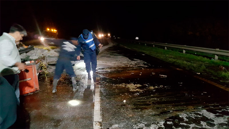 La brusca maniobra de un camionero a la altura del kilómetro 148, en la zona de Ceibas, generó el vuelco de otro. Las tareas para limpiar la ruta se extendieron por cuatro horas.