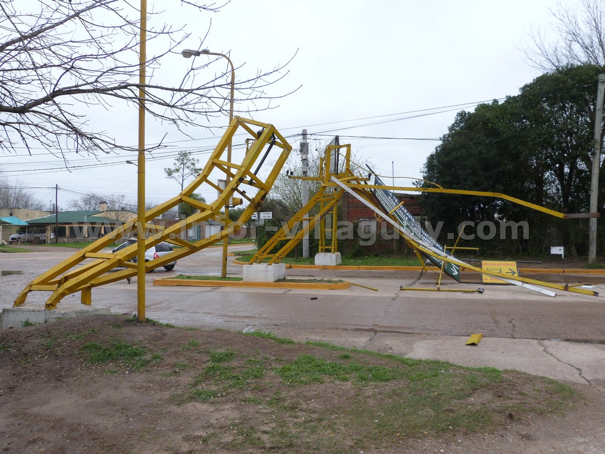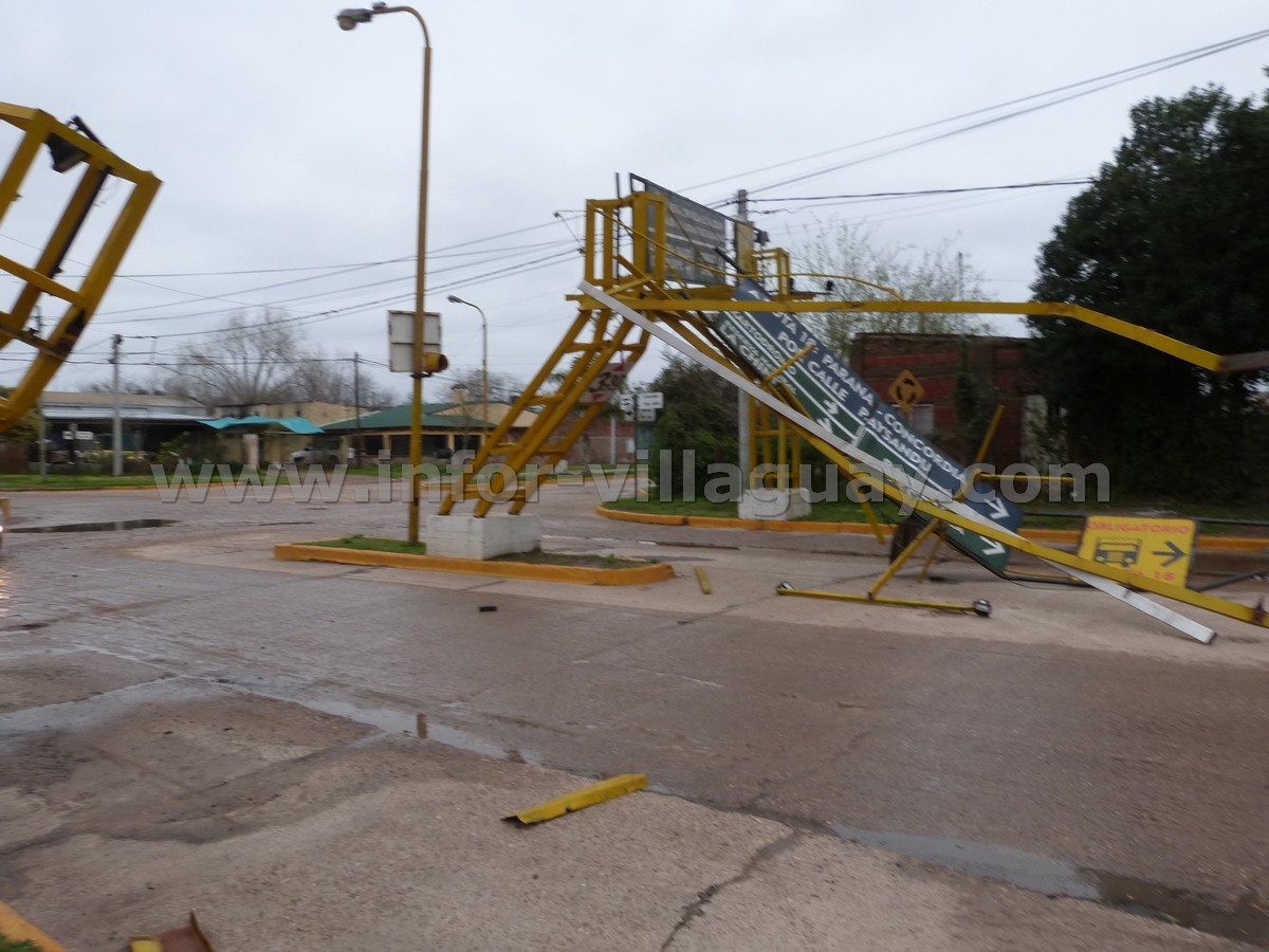 Es impresionante como ha quedado el cartel limitador de altura del ingreso Sur de nuestra ciudad, aproximadamente minutos antes de las 17:00 horas un camión realiza el ingreso a la ciudad sin aminorar su marcha ni observar la carteleria que indica el desvío al transito pesado.