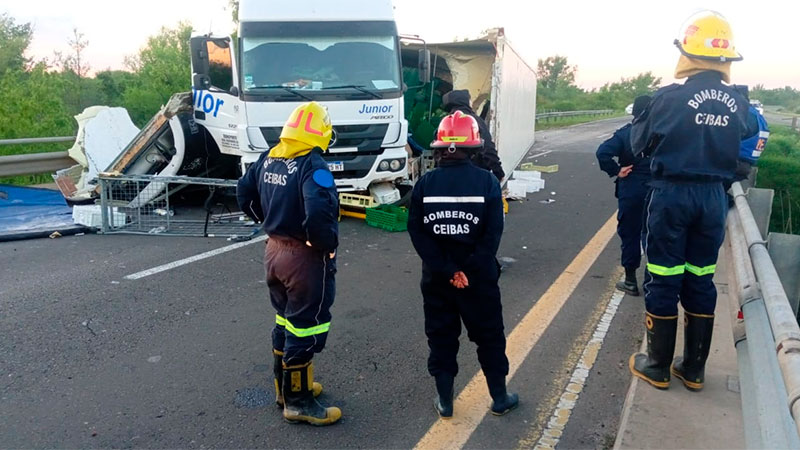 Según dieron cuenta los Bomberos Voluntarios Ceibas, un camión volcó en la cabecera de un puente y quedó atravesado en la cinta asfáltica, sobre la mano que va de Buenos Aires a Entre Ríos.