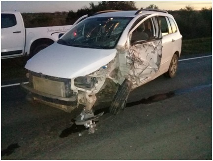 Por razones que se tratan de establecer colisionaron un auto Volkswagen Suran conducido por un hombre de 43 años, domiciliado en esta ciudad de Villaguay, que circulaba por la ruta mencionada en sentido Este–Oeste; y un camión Iveco con semirremolque, perteneciente a la empresa Tanus Jalil, conducido por un hombre de 33 años, domiciliado en Córdoba-Cosquin-, y circulaba en sentido Oeste a Este.