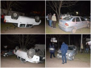 Aproximadamente a las 19:30 horas de este Sábado 7 de Junio de 2025, y por causas que se tratan de establecer se produjo un choque y posterior vuelco en la intersección de las calles Corrientes y Saburlin de nuestra ciudad, gracias a Dios sin arrojar daños `personales, solamente materiales
