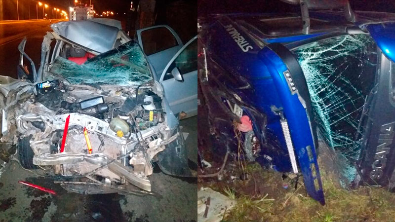 Tres personas resultaron heridas a raíz de un tremendo accidente ocurrido esta madrugada. En el despiste, el camión se cruzó de carril en la Autovía Artigas, chocó de frente a un automóvil y volcó en la banquina.