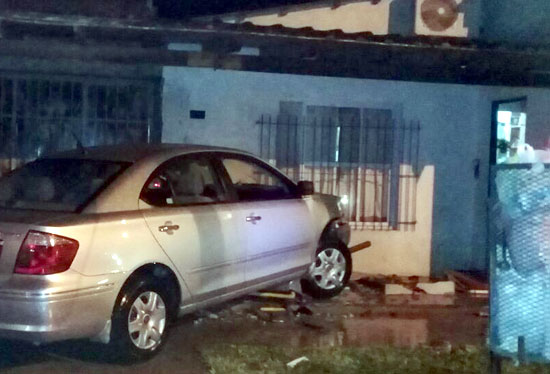 El hecho tuvo lugar minutos antes de las 21 horas de este miércoles, cuando la conductora de un Toyota Corola de caja automática, no pudo dominar su rodado y chocó el gabinete del frente de su casa ubicada en calles 12 el Oeste y Santa Teresita.