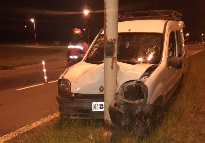 Por causas que se trataban de determinar el rodado salió de la calzada y tras subir a la plazoleta divisoria de carriles, terminó impactando contra una columna de alumbrado.