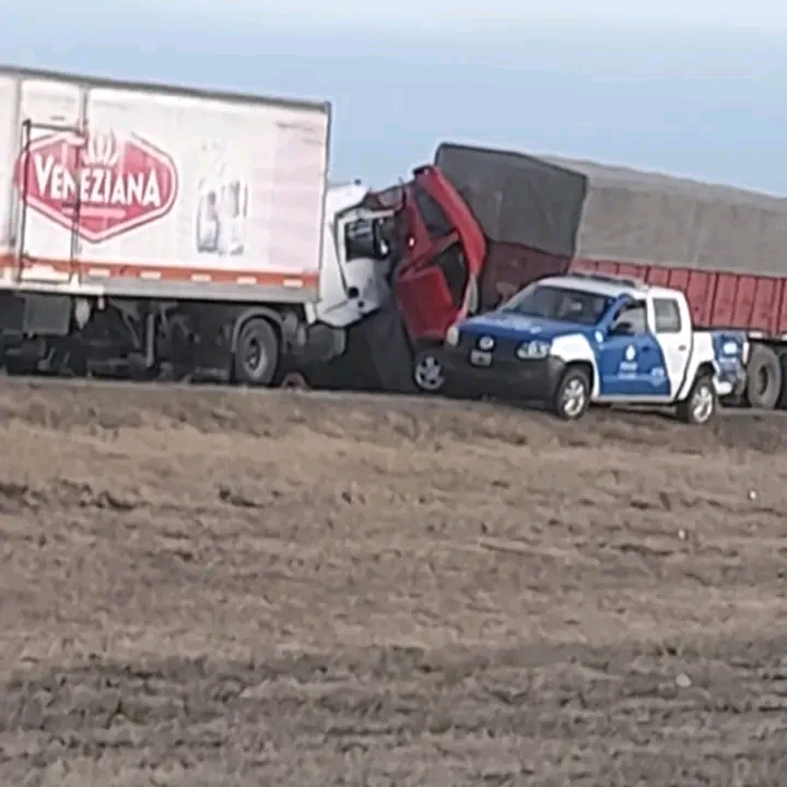 Lo cierto es que como consecuencia del impacto, uno de los automóviles involucrados, un Volkswagen Polo gris, quedó literalmente debajo del semi del primer camión, mientras que un Chevrolet Agile rojo terminó levantado entre los vehículos pesados.