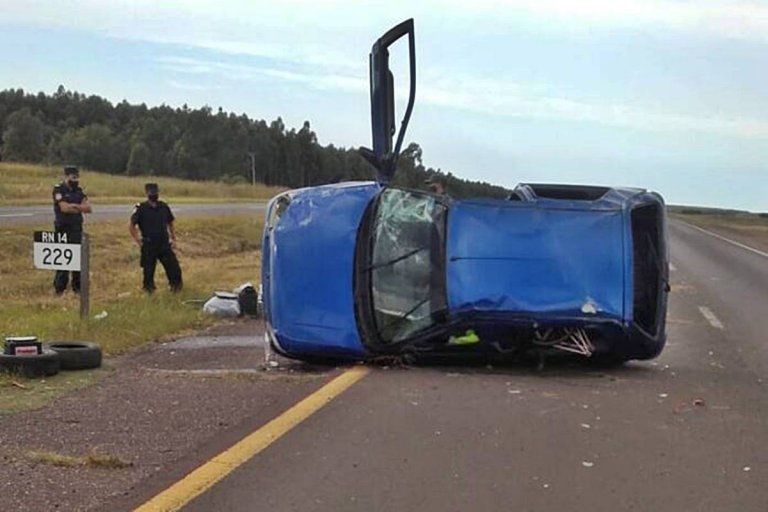 En el lugar se constató que un automóvil – Renault Clío, azul – volcó sobre el carril con sentido norte-sur. Afortunadamente, su conductor y único ocupante- de 56 años, domiciliado en la provincia de Misiones y de apellido Zalazar – resultó ileso.