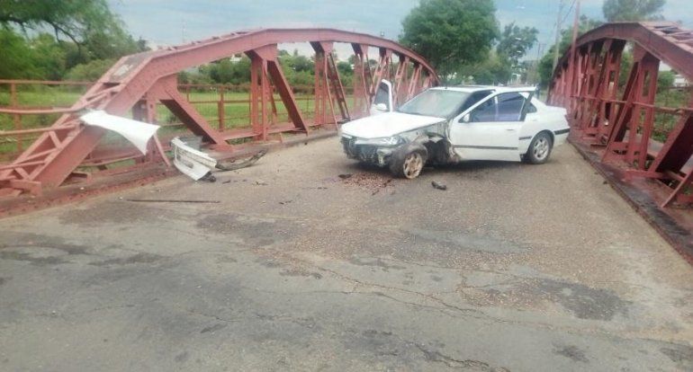 Se registró un fuerte siniestro vial con dos heridas en La Paz la mañana de ayer domingo, cuando un auto impactó contra uno de los extremos del Puente Rojo de la ciudad.