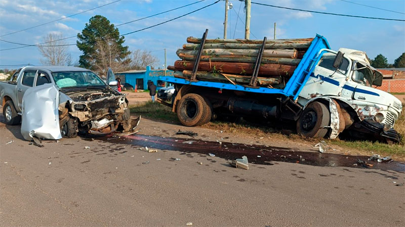 Allí, una camioneta Toyota Hilux que circulaba por la autovía en dirección norte a sur, salió de la cinta asfáltica en dirección a la colectora oeste y, durante la maniobra, el conductor aparentemente no se habría percatado que se acercaba un camión Mercedes Benz 1114 cargado de eucaliptus y se produjo el violento impacto.