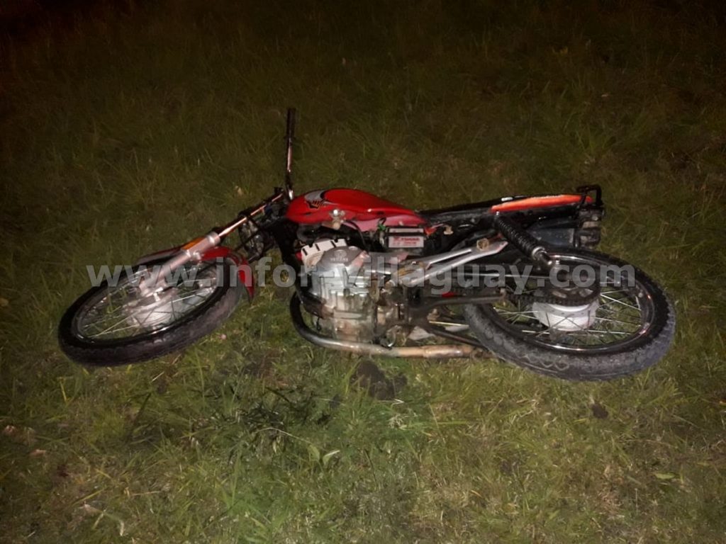 Al llegar los efectivos constatan una motocicleta marca Yamaha YBR, color roja sin dominio sobre la banquina norte, visiblemente dañada en la parte frontal y junto a ella una persona sin vida de sexo masculino, de 18 años de edad.