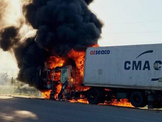El incendio se habría originado con el transporte de cargas en marcha, pero su conductor logró parar en la banquina y momentos más tarde arribaron dos dotaciones de los Bomberos Voluntarios de Gualeguaychú.