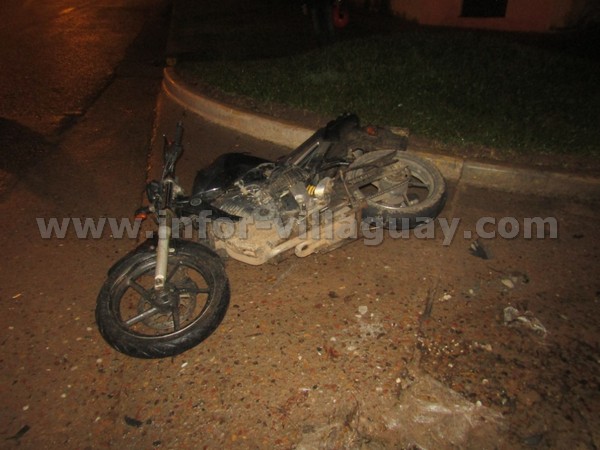 Aproximadamente a las 19:00 hs., personal de comisaria octava es comisionado a calle La Pampa y Moulins, por un posible accidente de tránsito. En el lugar observan una colisión entre un automóvil marca Renault 18 de color crema, conducido por un ciudadano de 54 años, que circulaba por calle Moulins de Oeste a Este y una moto marca Yamaha FZ 160 cc., conducida por un joven de 29 años, circulaba por calle La Pampa  desde el cardinal Sur.- Producto del impacto el conductor del rodado de menor porte pierde la estabilidad, cae sobre la cinta asfáltica, lesionándose, se lo traslada al Hospital Masvernat.- Luego desde el nosocomio informan que el lesionado presenta fractura de tibia y peroné.- Intervino la División Criminalística.-