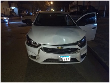 El primero de ellos se registró a las 22:00 horas y tuvo lugar en calle Matheu y Rivadavia. Intervienen un automóvil Chevrolet Onix conducido una mujer de 62 años de edad, que circulaba por calle Matheu de Oeste a Este y una motocicleta Honda X250 conducida por un hombre de 29 años de edad que circulaba por calle Rivadavia con sentido sur-norte; este último fue trasladado al nosocomio local, quien presentó lesiones de carácter leves.