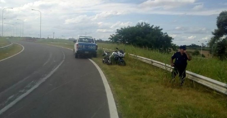 Un joven -de 23 años- que conducía una moto, acompañado por una joven también mayor de edad, protagonizó un siniestro vial la tarde de este sábado, alrededor de las 16, en el rulo del Acceso Norte en Colonia Avellaneda, departamento Paraná.
