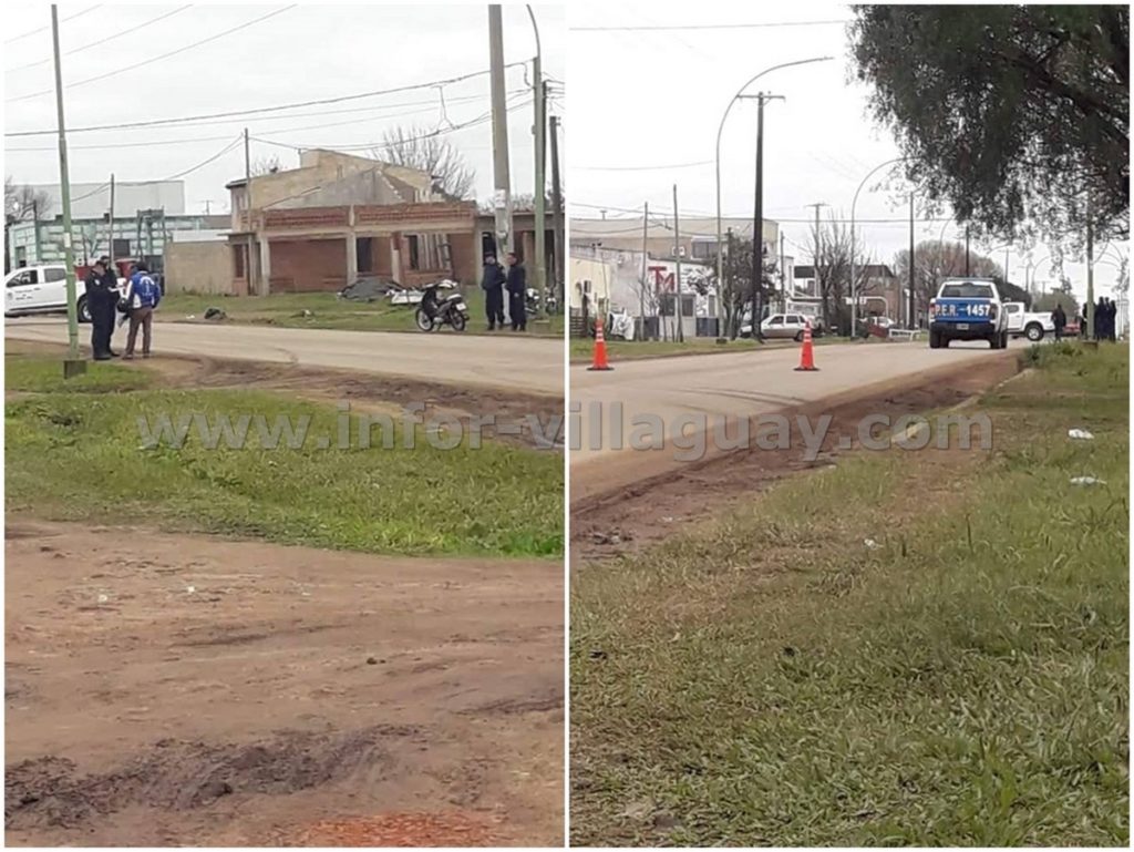 Aproximadamente a las 14:40 de esta tarde de Viernes transitaba por calle Paysandú una pareja en motocicleta, entre las calles Posadas y Perú se le atraviesa un can, el que es atropellado por la motocicleta perdiendo el control del rodado cayendo a la ruta.
