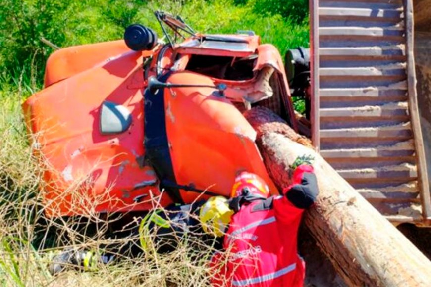 Debido a la magnitud del hecho, intervinieron bomberos voluntarios de La Histórica, que llegaron a la zona con el principal objetivo de sacar del vehículo al conductor del camión volcador, luego de que uno de los troncos se incrustó en la cabina.