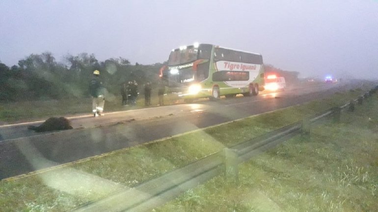 Susto: en medio de la densa niebla, un colectivo chocó un animal A pesar del paro nacional que adhirió el transporte, el colectivo seguía su viaje y protagonizó un siniestro vial en la Ruta 12