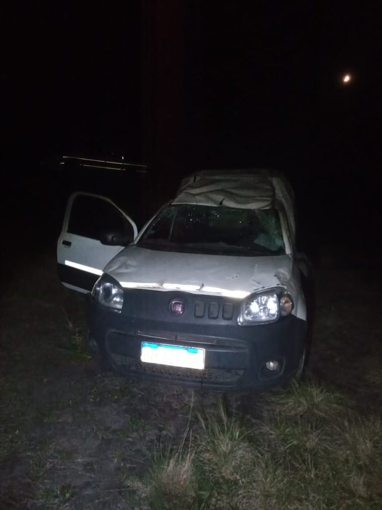 Como protagonista tuvo lugar un automóvil utilitario marca Fiat modelo Fiorino, perteneciente a la Cooperativa Farmacias Paraná la cual circulaba sentido este-oeste portando cargamento de medicamentos, conducida por un hombre de 45 años, acompañado de un hombre 57 años de edad. Según manifestaron los ocupantes del rodado el despiste fue producido por esquivar un ciervo en la ruta; en consecuencia el conductor debió ser trasladado al nosocomio local por presentar dolor en el hombro izquierdo. Resultando ambos ciudadanos con lesiones leves.-