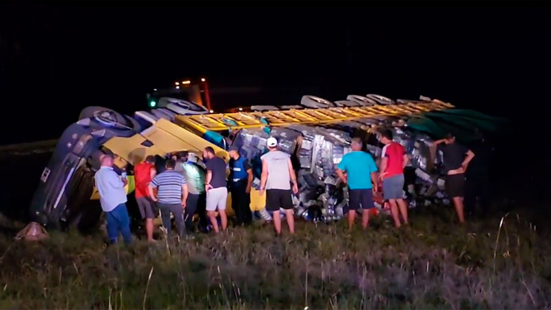 Un camión cargado con yerba mate y conducido por un hombre de apellido Maidana, oriundo de Virasoro (Corrientes), despistó y volcó en la Autovía Artigas, a la altura del kilómetro 286, en el departamento Concordia.