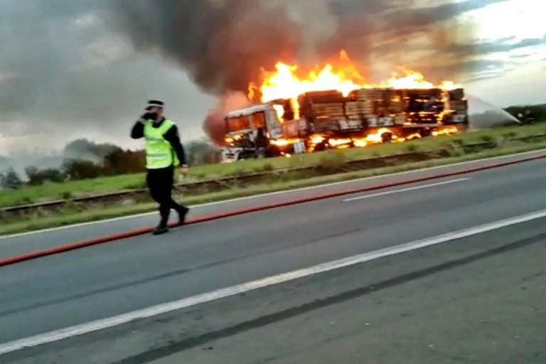 Por su parte, explicó que «el camión brasilero transportaba harina a granel y el otro camión – argentino – trasladaba madera». Por último, reportó que el lugar del impacto presenta el «mismo estado de toda ruta 14», deslizando que no es el mejor y que «fue del Puesto Caminero hacia el norte, aún en suelo entrerriano».