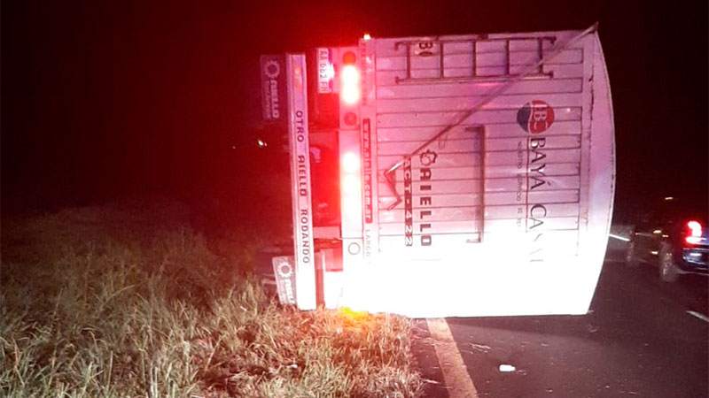 El conductor de un camión despistó y tras chocar el cantero central de la autovía 12 y protagonizó un vuelco. El hecho ocurrió esta madrugada a la altura del kilómetro 151.