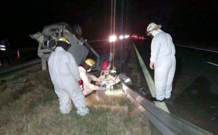 Al lugar acudieron dos dotaciones de Bomberos Voluntarios de Ceibas, que asistieron al conductor que había salido del rodado por sus propios medios, siendo ayudado por un camionero que pasaba por el lugar, quien apagó con matafuegos un principio de incendio en la zona del motor.