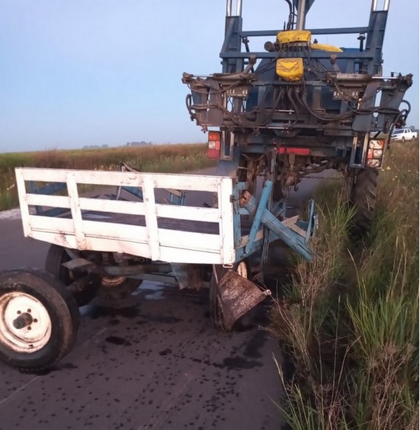 Aproximadamente a las 06:00 horas, de este lunes, se reporta el accidente de tránsito entre un VolksWagen Gol que se conducía por la Ruta Nacional -de Jubileo hacia General Campos- y un fumigador (_mosquito_) con acoplado, conducido por joven de 26 años de Colonia San Salvador, cuando este último sale de un camino vecinal.