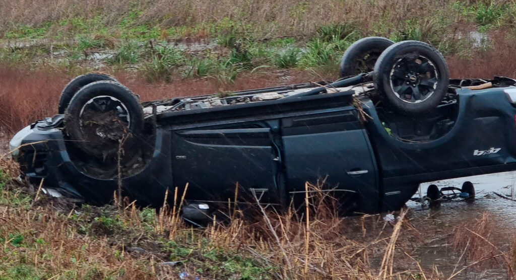 En horas de la tarde de este domingo, aproximadamente a las 16:50, se registró un siniestro vial en la Ruta Provincial 39 en la zona del Acceso a Colonia 2.  Personas que circulaban en la zona, en medio de una persistente precipitación, advierten que una camioneta, Chevrolet S10, había despistado y volvado, y que posiblemente había personas lesionadas.