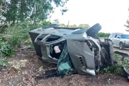 La conductora de una camioneta Toyota Hilux, por impericia, perdió el control de su vehículo, chocó contra una barrera forestal y terminó volcando en un camino vecinal, al este de la ruta provincial 2, en Santa Ana, departamento Federación.
