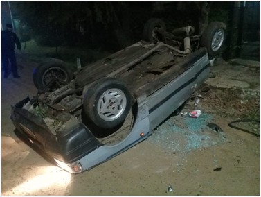 Por razones que se tratan de establecer el conductor de un automóvil Fiat Uno que circulaba por calle Zaburlin sentido oeste a este, pierde el control y termina volcando el vehículo (que queda con sus ruedas hacia arriba). Se trata de un hombre de 37 años de edad que fue trasladado en ambulancia hacia el Hospital local ya que refería dolor en el cuerpo (Lesiones Leves).