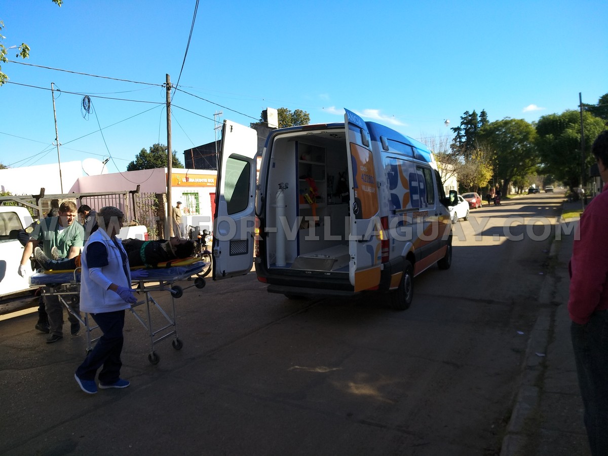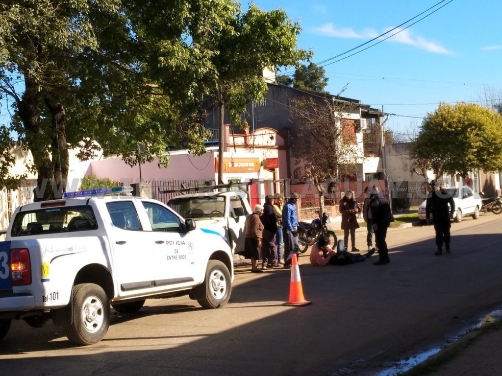 Siendo las 14:50 horas se registra un siniestro vial en calle Perón entre Paraná y Concepción del Uruguay; y que tuvo como protagonista una motocicleta Honda Titán 125 cc en la cual se conducía dos personas, un masculino de 21 años de edad acompañado por una menor de 15 años. Según manifestaciones del conductor momentos en que circulaba por calle Perón de Oeste a Este, se le atraviesa un perro por tal motivo pierde el control del rodado cayéndose al suelo. Como resultado ambas personas fueron trasladados hacia el hospital local donde debieron ser examinados por el médico de policía quien informo posteriormente que presentaban lesiones de carácter leves. Intervino oficial de turno de la Sección Judiciales dependiente de la División Operaciones y Seguridad, mecánico y fotógrafo policial de turno.-