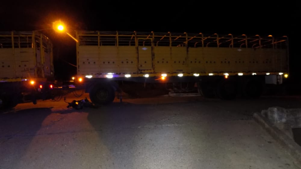 Por razones que se tratan de establecer una moto Honda modelo CG 125 conducida por un joven de 18 años de edad y que circulaba por calle Federación Norte-Sur colisiona contra la lanza de un acoplado que remolcaba un camión Ford cargo 1932 que circulaba por calle Santa Cruz de oeste-este y era conducido por otro masculino de 22 años.