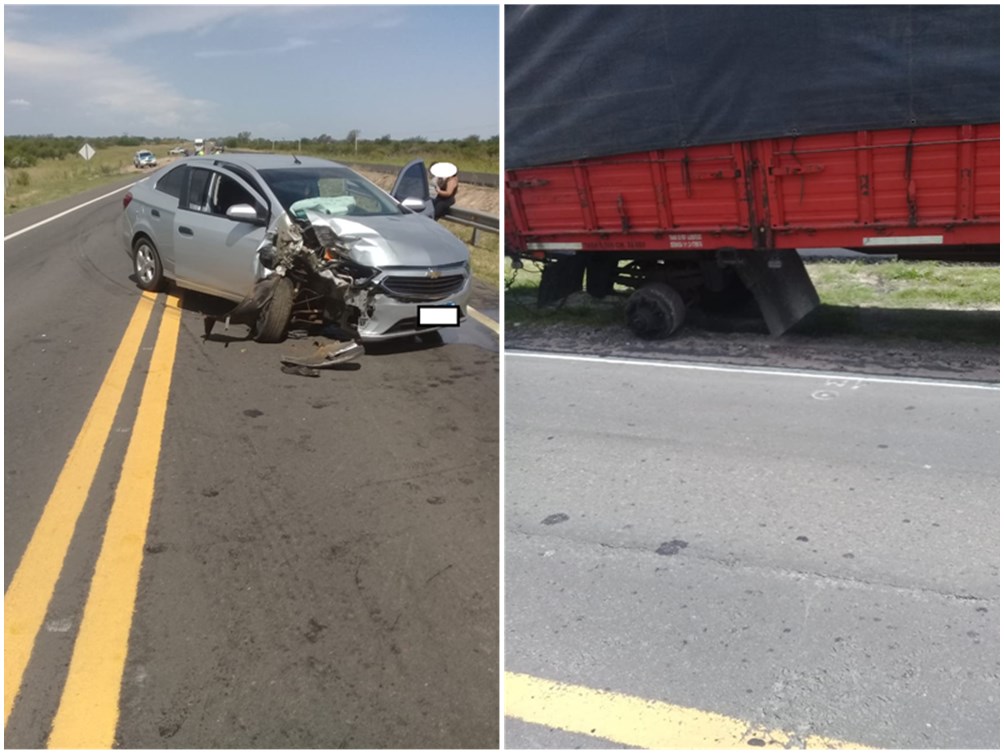 El hecho se registró a las 14:00 horas en Ruta Nacional Nro. 18 kilometro 106 (a la altura del puente sobre el Arroyo El Tigrecito). Se trata de un camión Scania 112 con acoplado que se circulaba por la mencionada ruta en sentido oeste a este y era conducido por un hombre de 44 años de edad oriundo de la ciudad de Colón, según se supo el acoplado perdió en marcha dos ruedas las cuales impactaron de frente con un automóvil Chevrolet Prisma que circulaba de este a oeste, y era conducido por un hombre de 41 años de edad acompañado por dos mujeres de 31, 63 y dos hombres de 21 y 25 años; todos oriundos de la ciudad de Posadas- Misiones.