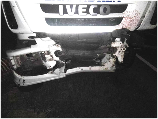 El segundo siniestro ocurrió en la Ruta Nacional Nro. 18 kilómetro 132 donde se vio involucrado camión IVECO CURSOR con acoplado cargado de maderas y dos equinos los cuales a raíz del impacto perdieron la vida. El conductor del camión, un hombre de 53 años de edad, oriundo de Federación. Se dio intervención a personal de Brigada Prevención de Delitos Rurales quienes informaron que los animales no presentaban diseño de marca y que se trataba de una potranca colorada y una yegua zaina. Las actuaciones a cargo  de Comisaría General Urquiza, colaboró personal policial de la Dirección Seguridad vial y Brigada Prevención de delitos rurales.-