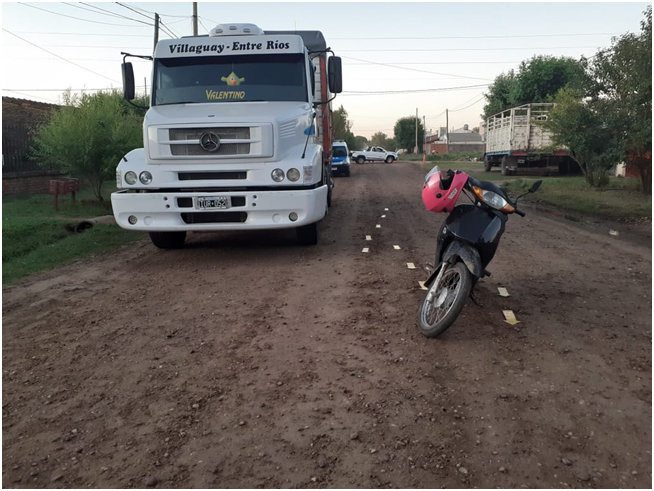 El primero de ellos en la ciudad de Villaguay y ocurrió a las 18:40 horas en calle Almeida entre Chile y Tucumán donde la conductora de una moto Corven Energy, una mujer de 27 años de edad por razones que se tratan de establecer colisiona a dos ancianos de 75 y 85 años de edad que intentaban cruzar calle Almeida. Las tres personas involucradas fueron trasladas al Hospital local donde el hombre de mayor edad presentó lesiones de carácter grave (fractura de tibia y peroné pie izquierdo) y los restantes lesiones leves. En el lugar intervino oficial de Judiciales, Criminalística y Mecánico policial.