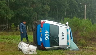 Dos policías y una abogada fueron hospitalizados, luego que despistara y volcara el patrullero en el que se desplazaban por la Ruta 14. El accidente fue ocasionado por un «espejo de agua», en el trazado vial.