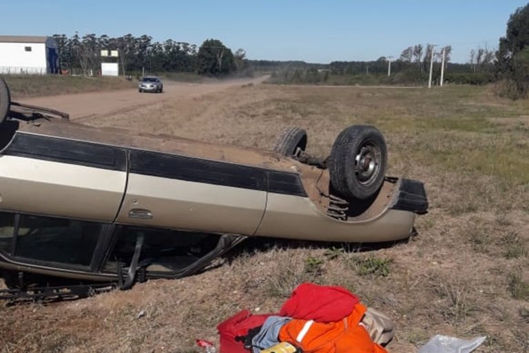 El vehículo circulaba de este a oeste cuando por causas que se tratan de establecer, perdió el control y terminó volcando en la banquina sur.